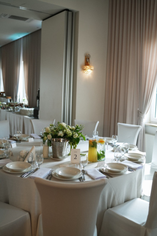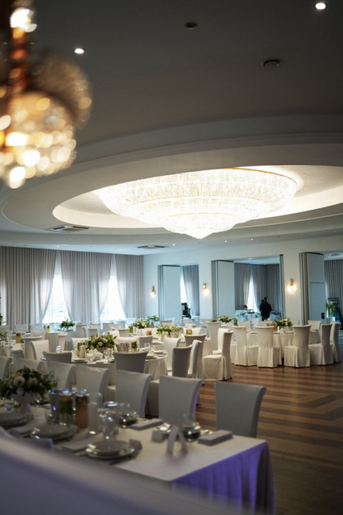 Posiadamy dwie duże sale - Hrabiego oraz Kryształową, a dla tych, którzy chcieliby celebrować ten wyjątkowy dzień jedynie w gronie najbliższych, istnieje możliwość organizacji kameralnego przyjęcia weselnego, w sali hotelowej - Ogrodowej, do 70 osób.
